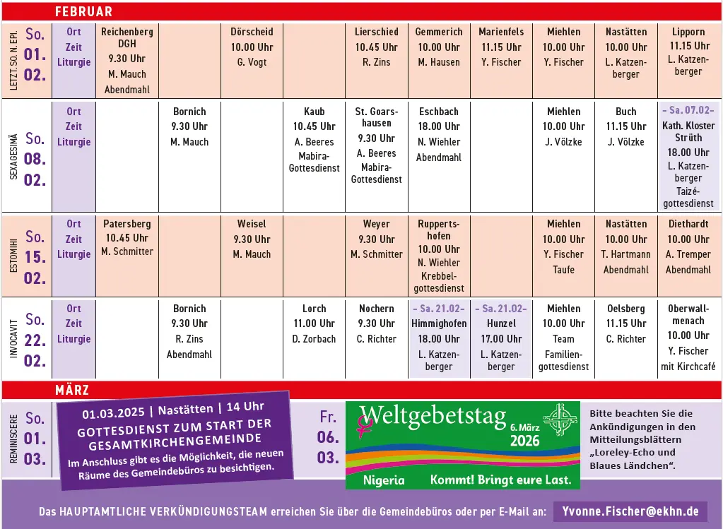 Gottesdienstplan Dez-Mär